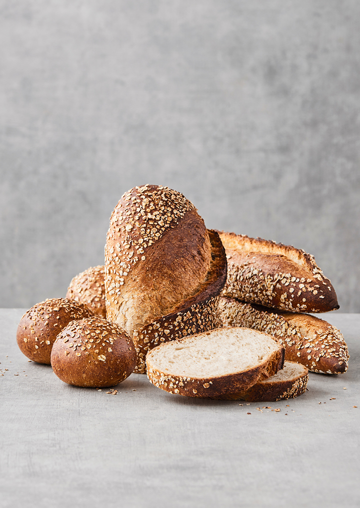 Brødene slås aflange op, vendes i fine havregryn og sættes på plade med virket ned.