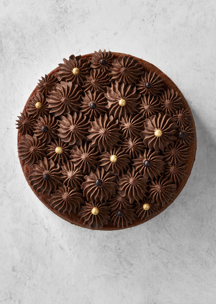 Svampet kage med karamelfyld og en rig og fyldig karamel ganache på toppen. En flot og dekorativ kage, der holder sig frisk og indbydende i 3-5 dage på køl. Kagebundene kan holde sig på frost i op til to måneder, godt pakket ind under plast. Opskriften giver 5 kager.