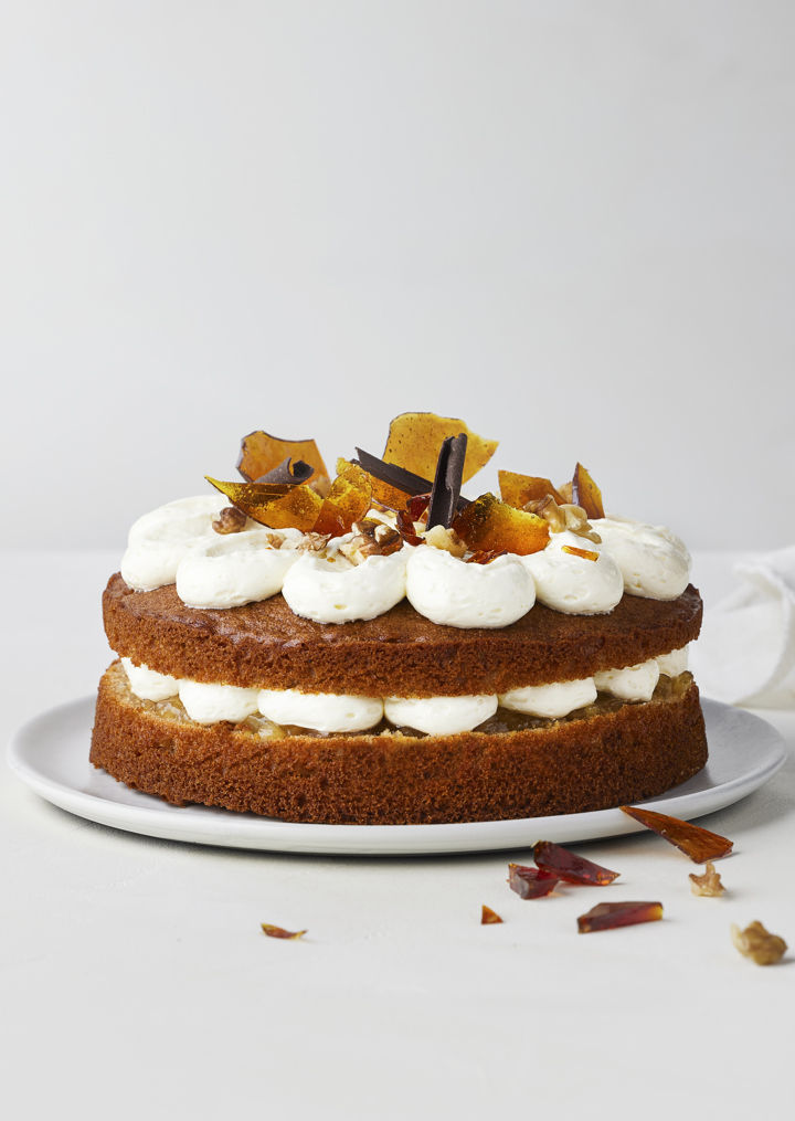 Sødme, blødhed og en dejlig saftig krumme med en dejlig smag af karamel og den flotteste gyldne farve. Her kombineret med en skøn smørcreme der giver en dejlig cremet konsistens sammen med den friske smag af æbler. Kagen er nem at bage og giver dig 6 kager.
