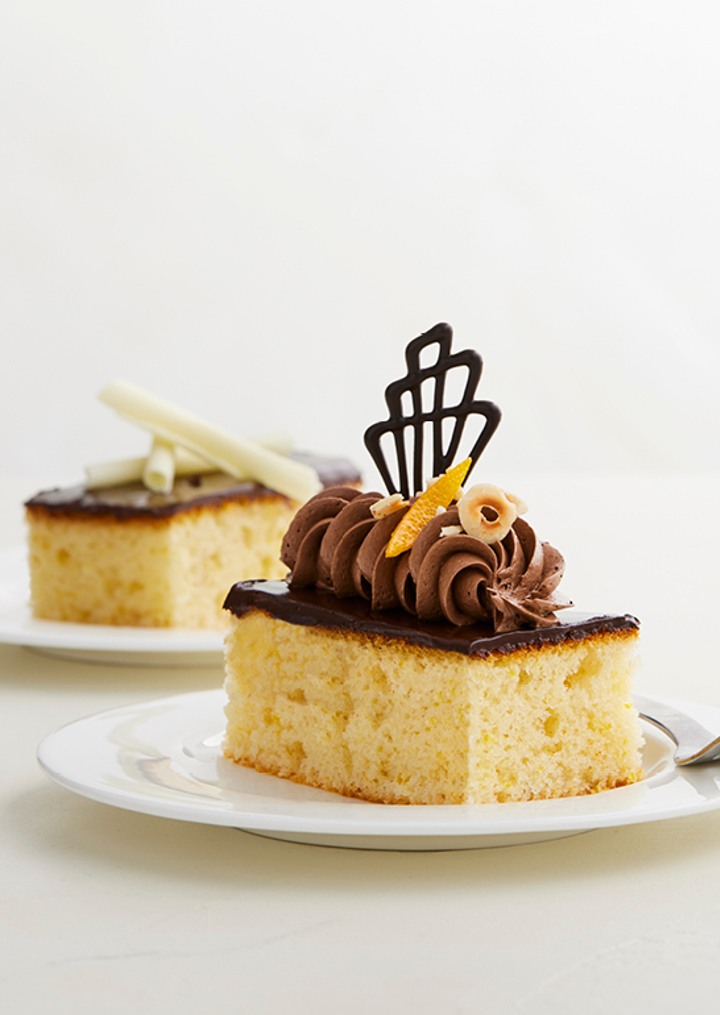 Skær kagen smurt med Mirabella Mørk ”Den nemme pynt” ud i ønsket antal stykker og størrelse.